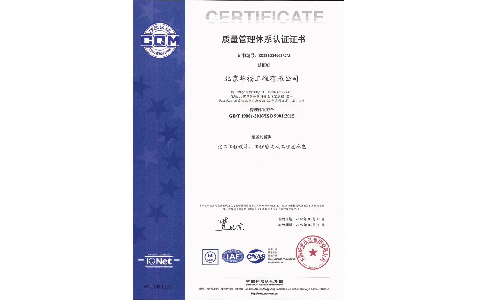 Quality Management System Certificate