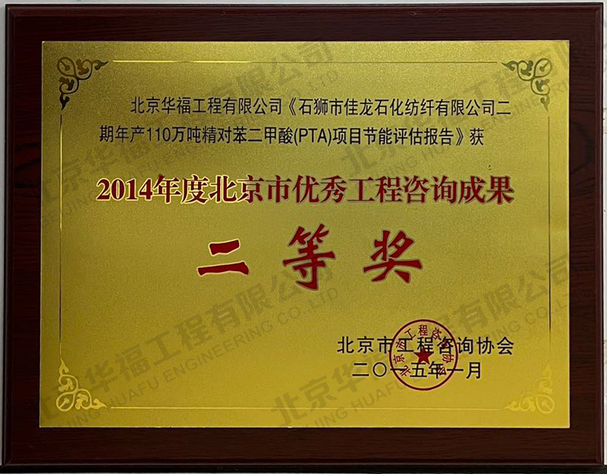 佳龍石化項目優秀工程咨詢成果二等獎