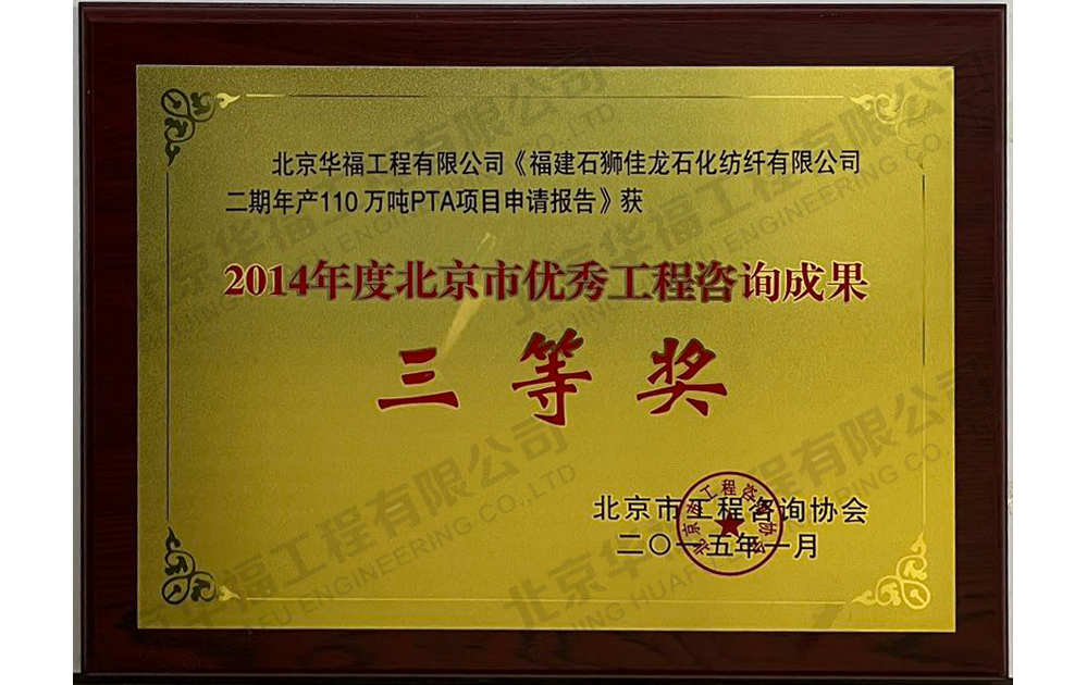 佳龍石化項目優秀工程咨詢成果三等獎